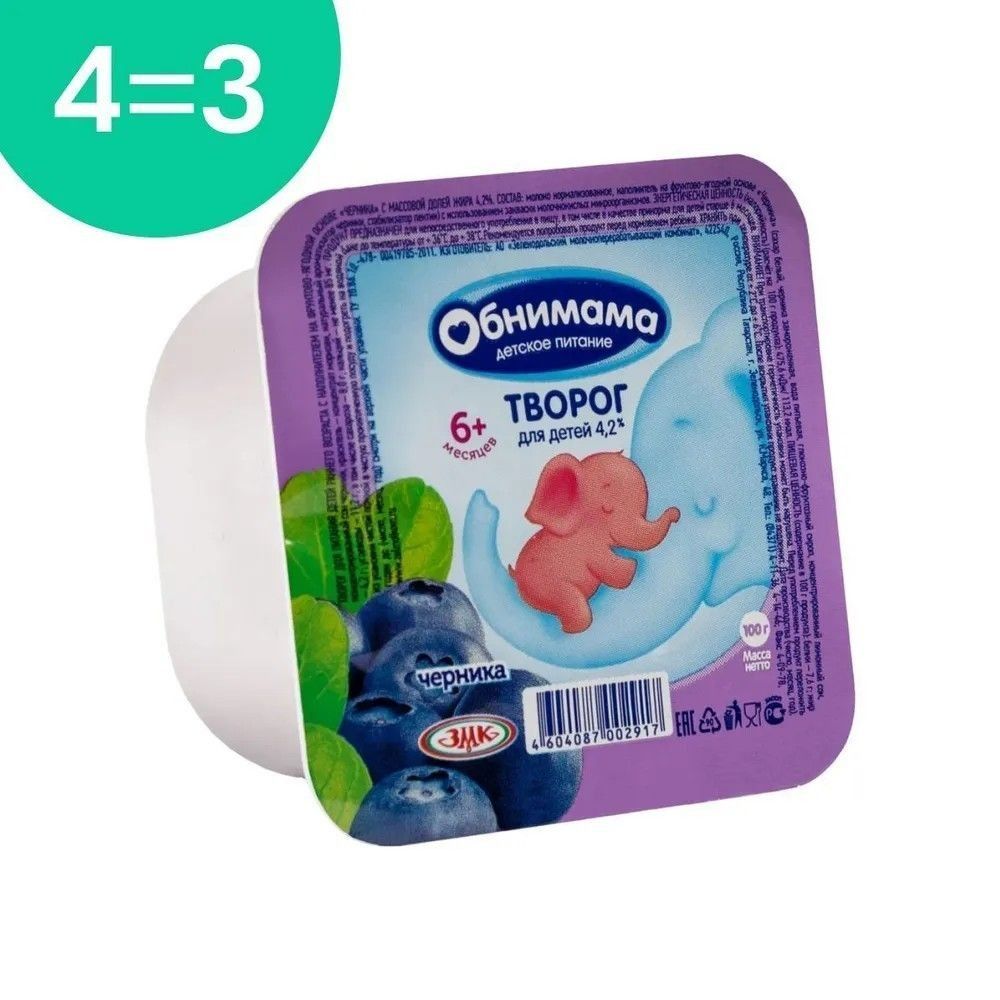 Творог детский Обнимама "Черника", 4,2%, 100 г