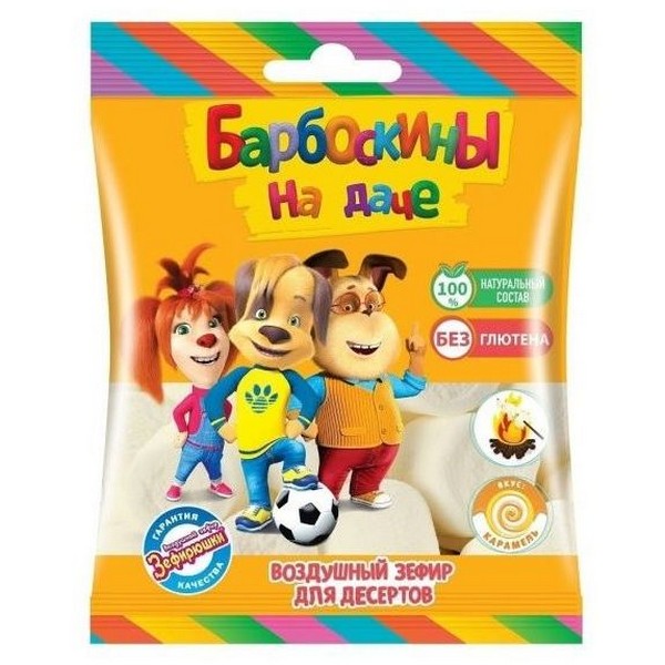 Маршмеллоу "Барбоскины" от ГК "Сладкая Сказка" подарит вам и вашим детям неподдельное удовольствие и истинное наслаждение от воздушного лакомства. Сладости с любимыми героями знаменитого мультсериала о пушистой семье упакованы в индивидуальные пакетики по 125 грамм. В один заказ входит 3 таких пакетика, что позволит вам полакомиться зефиром, а также угостить друзей и слизких. А какой восторг испытают дети от яркой упаковки с Тимохой, Розой, Лизой, Дружком, Геной и Малышом. Зефир, как лучшая пастила, не содержит глютена и полностью изготовлен из натуральных ингредиентов. Белый, воздушный и необычайно нежный - зефир со вкусом карамели большого размера. Он идеально подойдёт для сладкого барбекю на костре и подарит вам минуты приятного общения с близкими. Производитель "Сладкая Сказка".