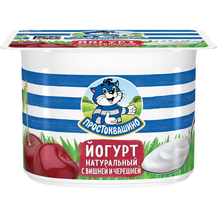 Встречайте фруктовый йогурт от Простоквашино! Йогурт Простоквашино - это натуральный йогурт с добавлением c фруктов и ягод, который производится из отборного молока, йогуртовой закваски и наполнителя на основе ягодного сока и пюре. Имеет мягкий вкус и нежную однородную консистенцию. Отлично подойдёт для правильного начала дня. Состав: нормализованное молоко, фруктовый наполнитель вода, вишня, сахар, кукурузный крахмал, концентрированный сок черной моркови, черешня, натуральный ароматизатор, загуститель – пектины, концентрированный лимонный сок, сахар, йогуртовая закваска. Может содержать следы глютена и орехов, вишневую косточку или ее фрагменты.