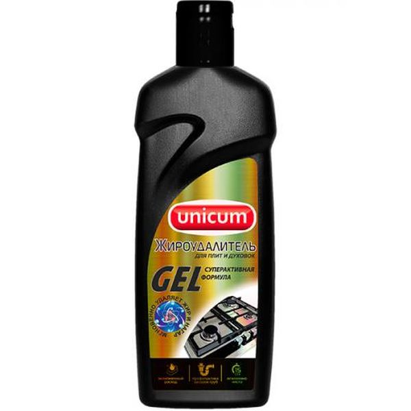 Жироудалитель Unicum в формате геля благодаря густой консистенции удобно и экономично наносится на очищаемую поверхность, мгновенно удаляет самые стойкие застарелые и подгоревшие масложировые загрязнения, нагар, копоть с поверхностей кухонных плит, духовых шкафов, грилей, кастрюль, сковородок, с прочих поверхностей для приготовления пищи, пароуловителей, кафельной плитки, в том числе и с охлажденных поверхностей. Наносится без аэрозольного облака. Возможно использование в качестве профилактики засоров кухонных сливных труб. Способ применения: Нанести средство на загрязненную поверхность с помощью губки или непосредственно на очищаемую поверхность подождать 15-20 секунд, протереть влажной тряпкой и смыть водой. В случае особо стойких загрязнений – повторить действие, увеличив время обработки до 1 минуты. Для нанесения средства и удаления загрязнений рекомендуется использовать рулонные тряпки торговой марки "Unicum".Для профилактики засоров – аккуратно налить гель (100 мл) в сливное отверстие, оставить на 15 минут. Промыть сильной струей теплой воды. Обработку проводить 1 раз в неделю. Состав: Вода очищенная более 30%, гидроксид натрия 5-15%, АПАВ 5-15%, НПАВ менее 5%, ТЭА менее 5%, Трилон Б менее 5%.