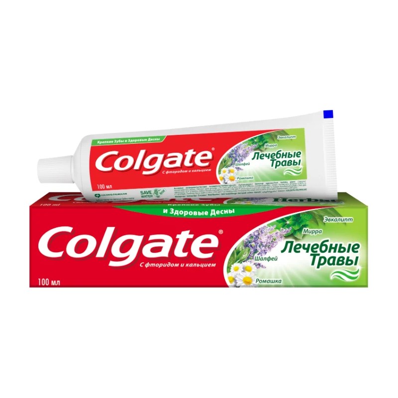 Зубная паста Colgate содержит уникальный сбор экстрактов лечебных трав. Её формула сочетает научные достижения Colgate с лечебными травами для здоровья зубов и дёсен. Паста содержит натуральный экстракт ромашки, обладающий противовоспалительным и заживляющим эффектом, и шалфей, который оказывает антисептическое действие. Мирра и эвкалипт полезны для дёсен, поскольку способствуют их укреплению и оказывают кровоостанавливающее действие.